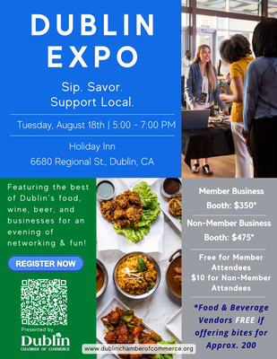 Dublin Expo: Sip, Savor & Support Local Business is a lively evening celebrating the best of Dublin’s food, wine, beer, and local businesses. Open to Chamber members and the broader community, the Expo brings people together to taste, connect, and discover the businesses that make Dublin thrive—all in a fun, welcoming atmosphere.